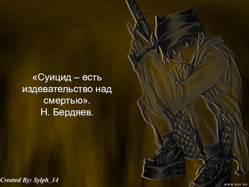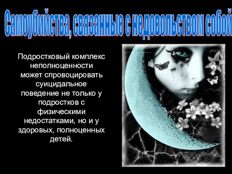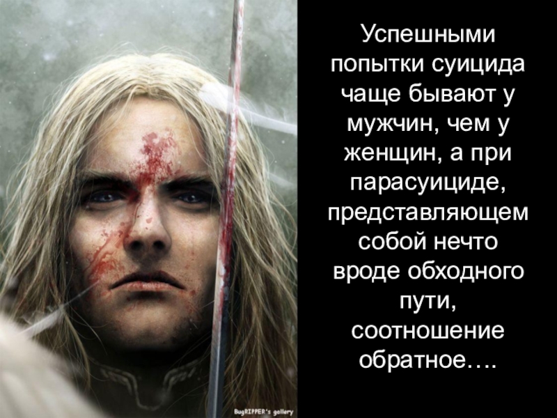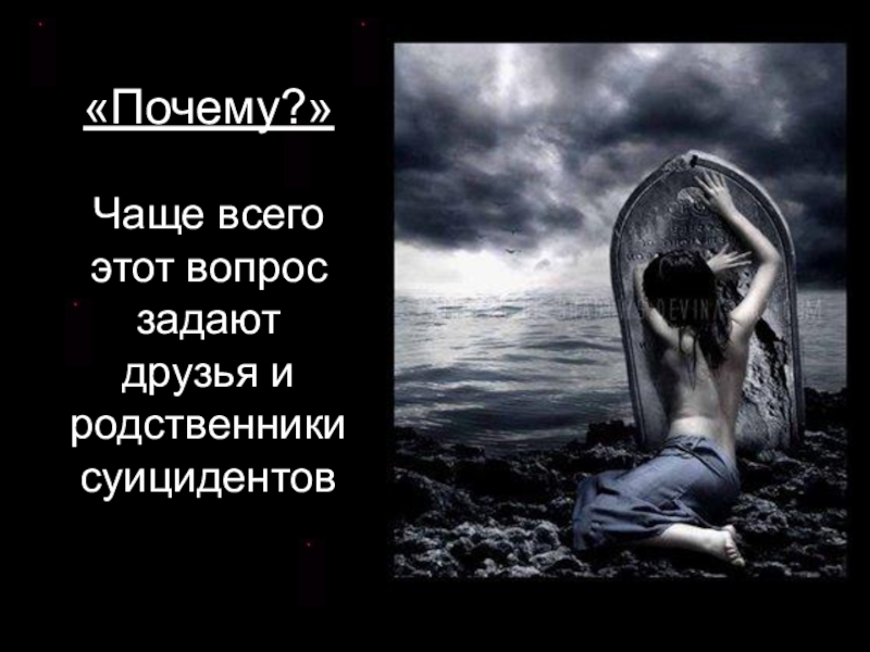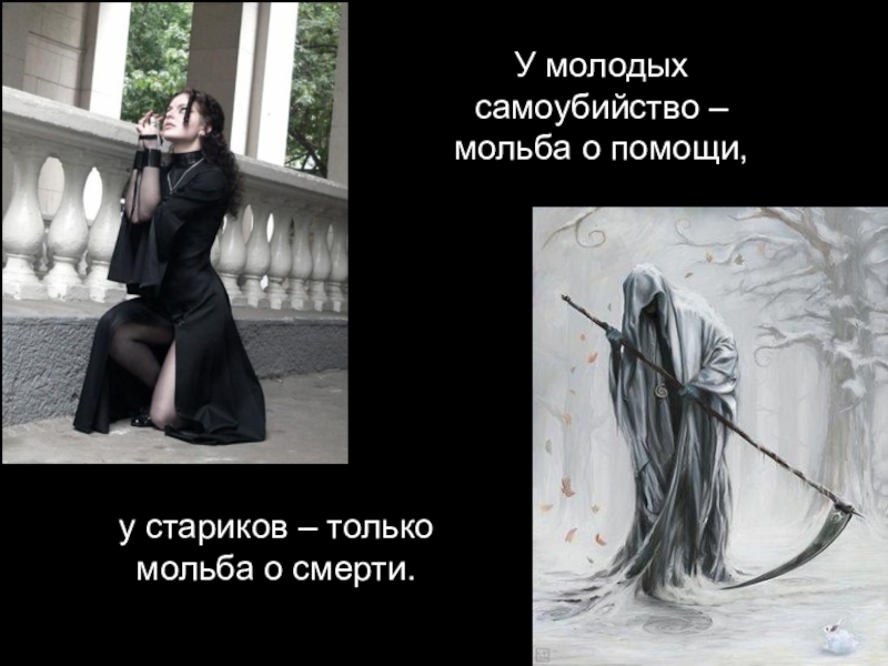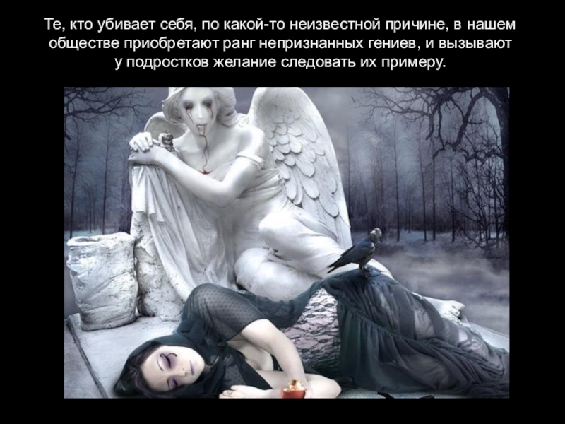 Слайд 19Те, кто убивает себя, по какой-то неизвестной причине, в нашем обществе