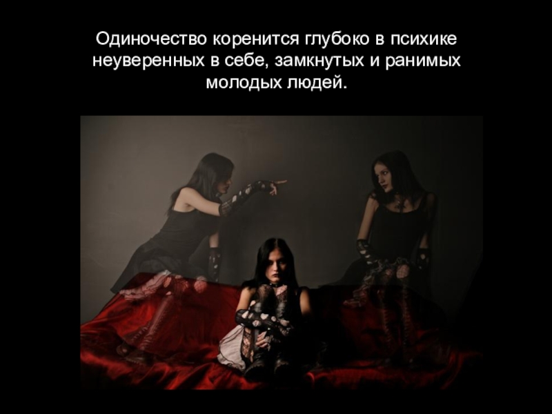 Слайд 22Одиночество коренится глубоко в психике неуверенных в себе, замкнутых и ранимых