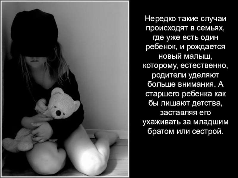 и рождается новый малыш, которому, естественно, родители уделяют больше внимания. А старшего ребенка как бы лишают детства, заставляя его ухаживать за младшим братом или сестрой.