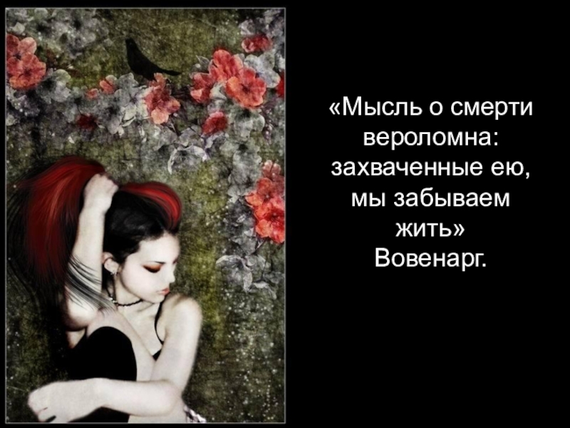Слайд 40«Мысль о смерти вероломна: захваченные ею, мы забываем жить»