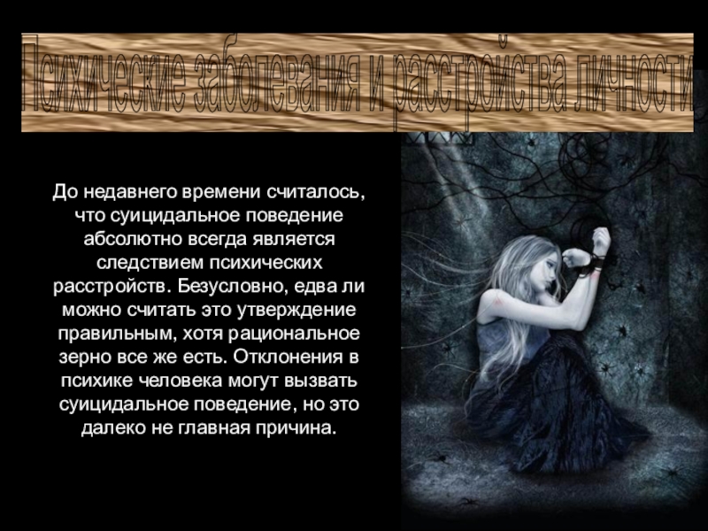 Слайд 29До недавнего времени считалось, что суицидальное поведение абсолютно всегда является следствием