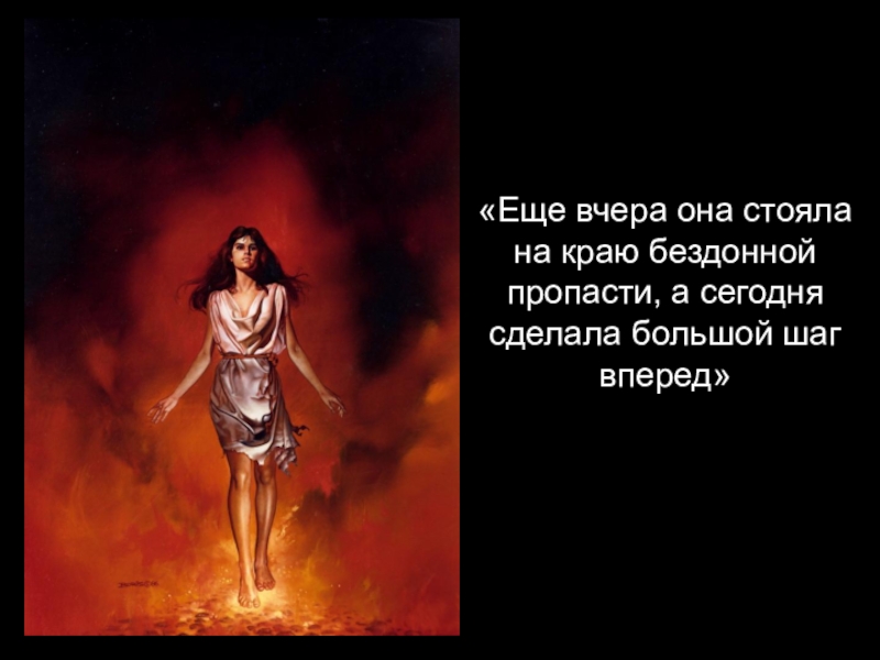 Слайд 26«Еще вчера она стояла на краю бездонной пропасти, а сегодня сделала