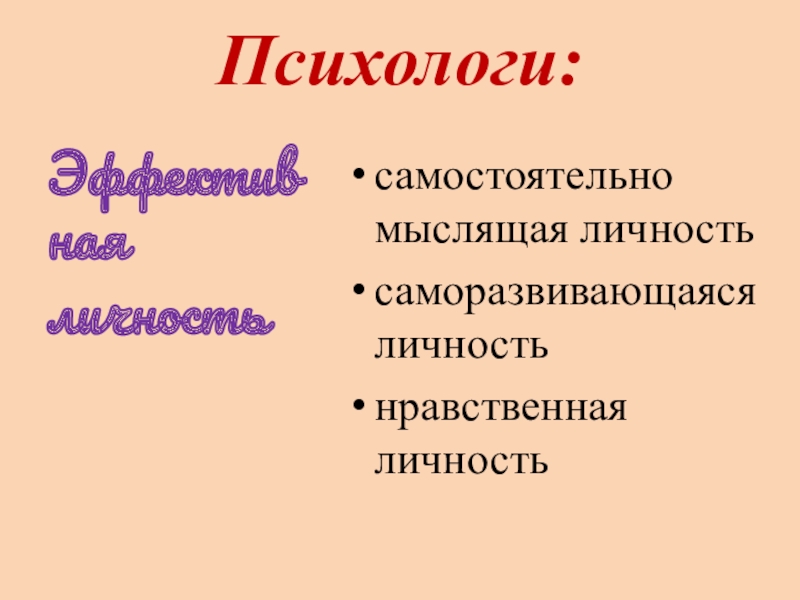 Психологи:Эффективная личностьсамостоятельно мыслящая личностьсаморазвивающаяся личностьнравственная личность