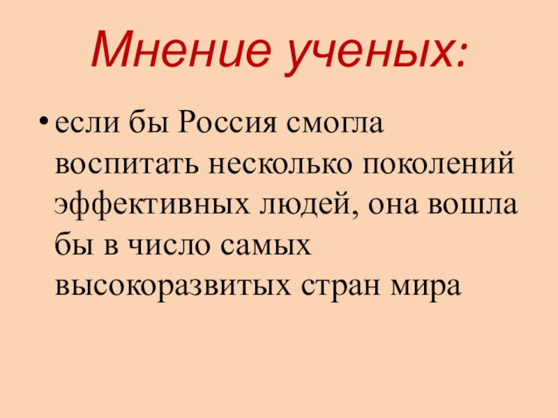 Мнение ученых: если бы Россия смогла воспитать несколько поколений эффективных людей, она вошла бы в число самых