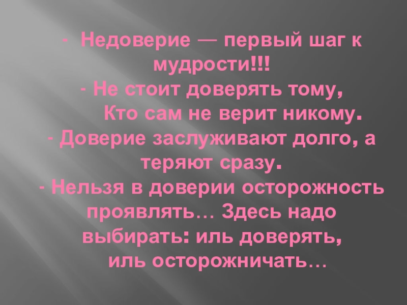 Слайд 18- Недоверие — первый шаг к мудрости!!! - Не стоит доверять тому,
