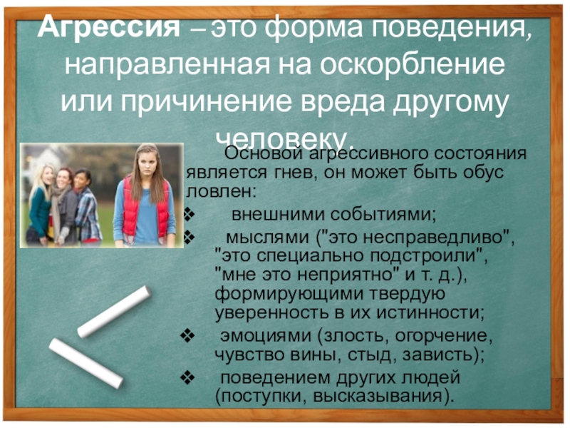Основой агрессивного состояния является гнев, он может быть обусловлен: