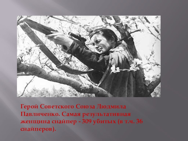 Слайд 5Герой Советского Союза Людмила Павличенко. Самая результативная женщина снайпер - 309