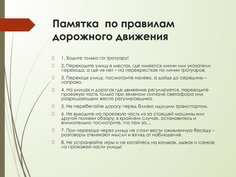 6. Не выходите на проезжую часть из-за стоящей машины или другой помехи обзору; в крайнем случае, остановитесь и внимательно посмотрите, что там за…