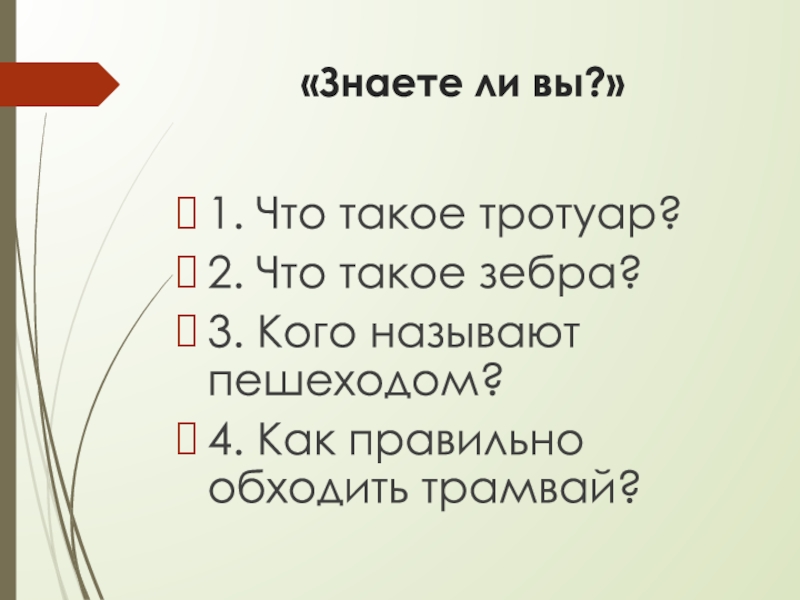 «Знаете ли вы?» 1. Что такое тротуар? 2. Что такое зебра?