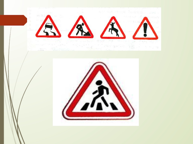 Предупреждающие знаки треугольные, а периметр треугольника красного цвета. Между собой знаки этой группы различаются рисунками внутри треугольника.