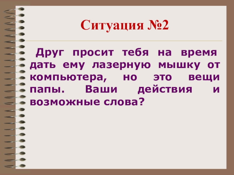 Ситуация №2 Друг просит тебя на время дать ему лазерную мышку от компьютера, но это вещи папы.