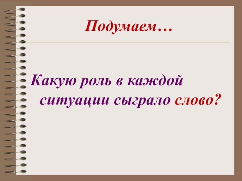 Подумаем…Какую роль в каждой ситуации сыграло слово?