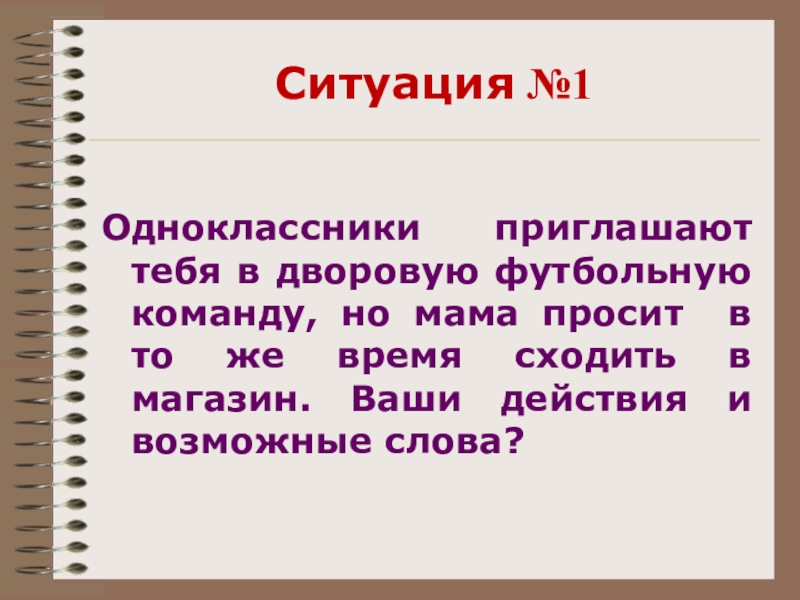 Ситуация №1 Одноклассники приглашают тебя в дворовую футбольную команду, но мама просит в то же время сходить