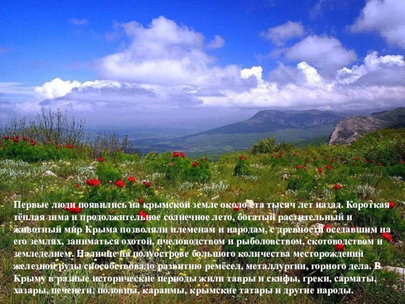 Слайд 5Первые люди появились на крымской земле около ста тысяч лет назад.