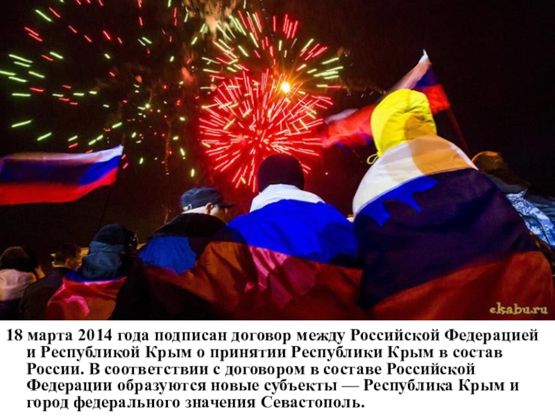 Слайд 2518 марта 2014 года подписан договор между Российской Федерацией и Республикой
