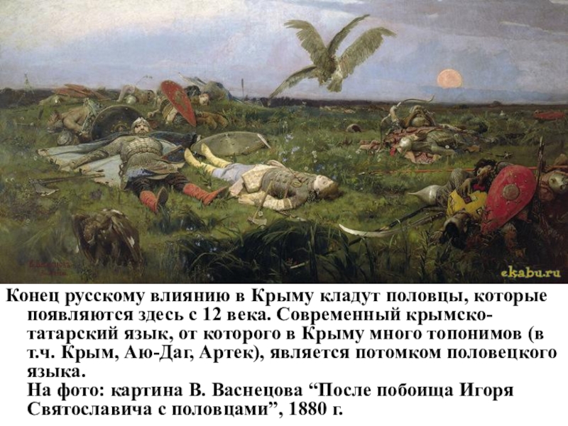 Слайд 9Конец русскому влиянию в Крыму кладут половцы, которые появляются здесь с