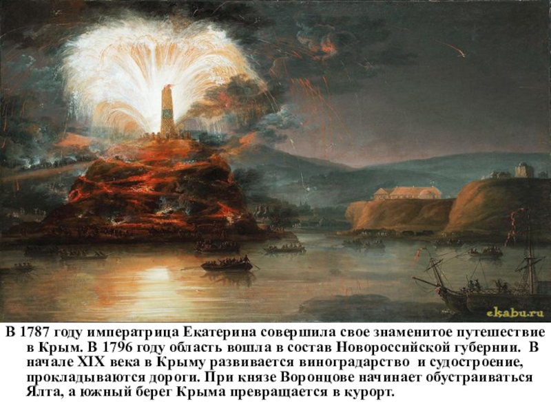 Слайд 13В 1787 году императрица Екатерина совершила свое знаменитое путешествие в Крым.
