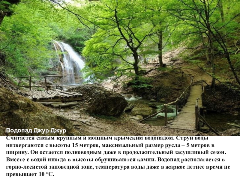 Считается самым крупным и мощным крымским водопадом. Струи воды низвергаются