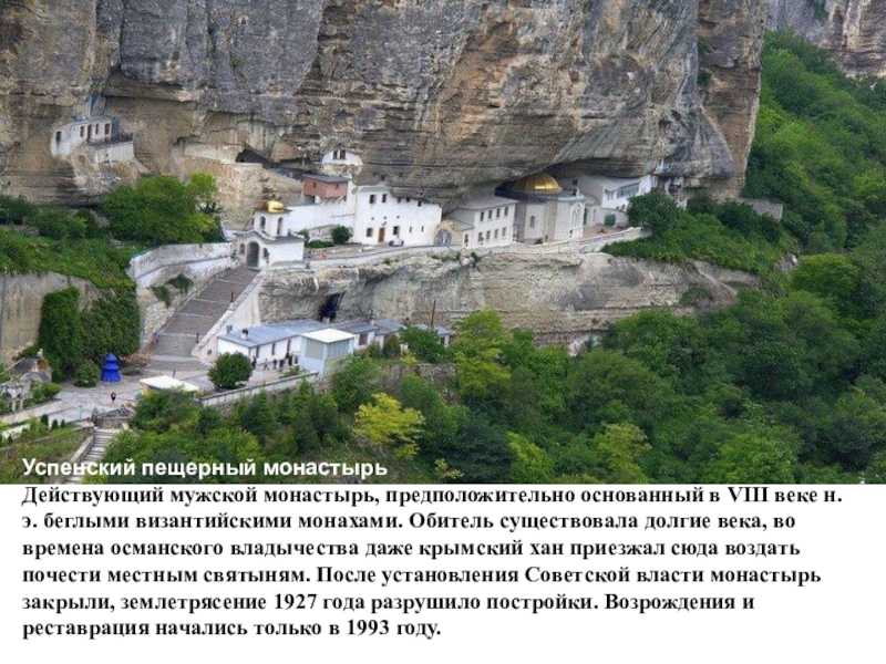 беглыми византийскими монахами. Обитель существовала долгие века, во времена османского владычества даже крымский хан приезжал сюда воздать почести местным святыням. После установления Советской власти монастырь закрыли, землетрясение 1927 года разрушило постройки. Возрождения и реставрация начались только в 1993 году.