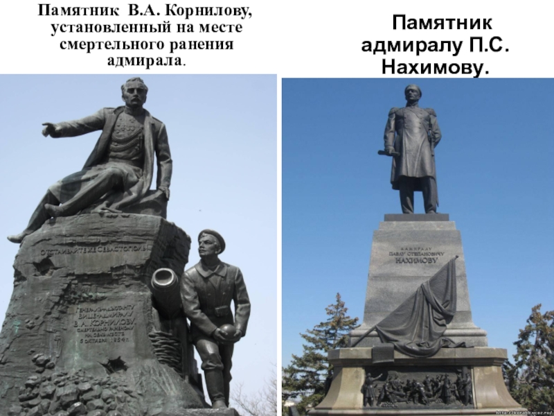 Слайд 15 Памятник В.А. Корнилову, установленный на месте смертельного ранения адмирала.