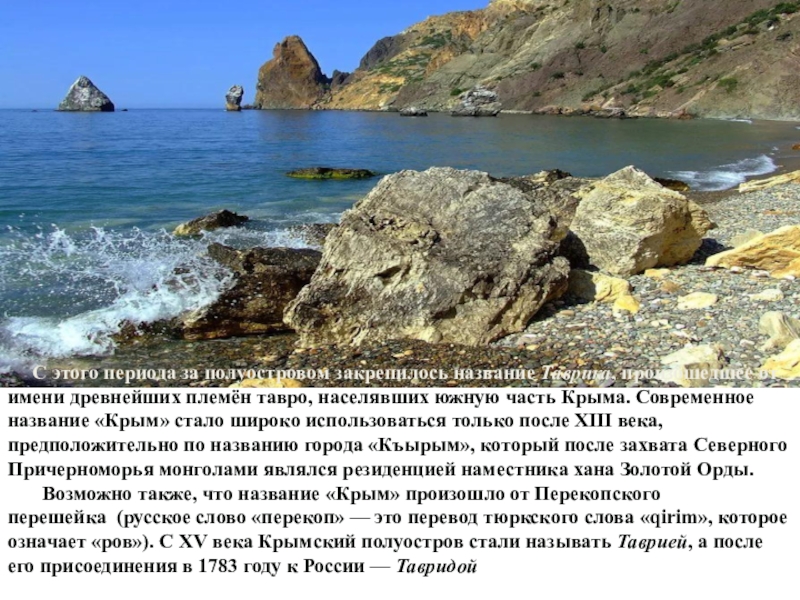 Слайд 6 С этого периода за полуостровом закрепилось название Таврика, произошедшее