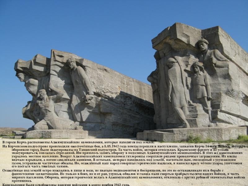 Слайд 44В городе Керчь расположены Аджимушкайские каменоломни, которые находятся под землёй.