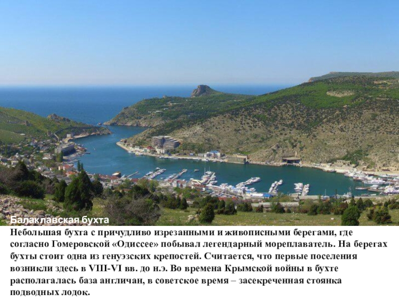 Гомеровской «Одиссее» побывал легендарный мореплаватель. На берегах бухты стоит одна из генуэзских крепостей. Считается, что первые поселения возникли здесь в VIII-VI вв. до н.э. Во времена Крымской войны в бухте располагалась база англичан, в советское время – засекреченная стоянка подводных лодок.