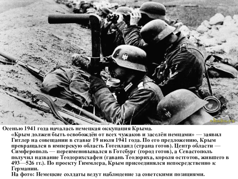 Слайд 18Осенью 1941 года началась немецкая оккупация Крыма.