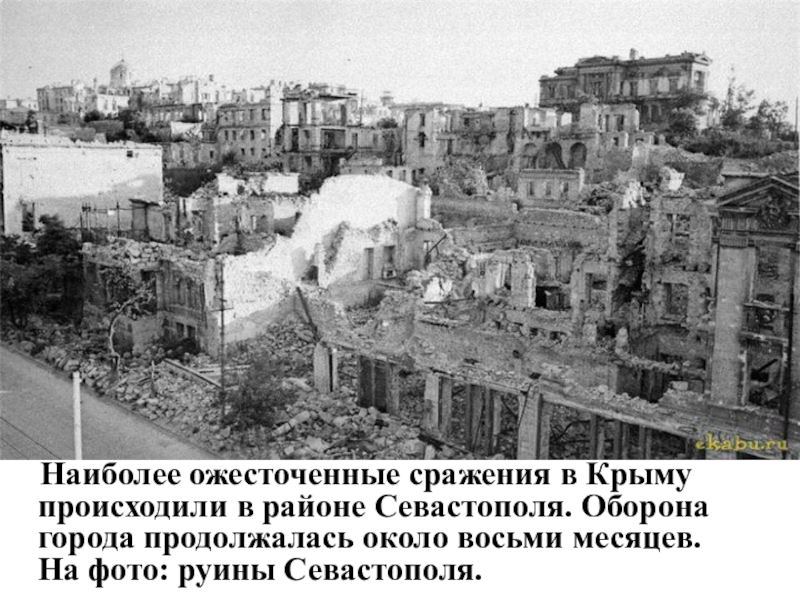 Слайд 19 Наиболее ожесточенные сражения в Крыму происходили в районе Севастополя.