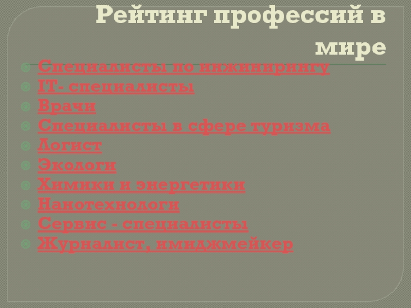 Слайд 3Рейтинг профессий в мире