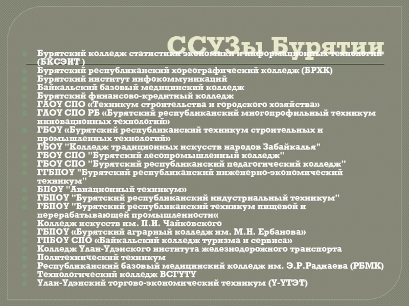 Слайд 11ССУЗы Бурятии