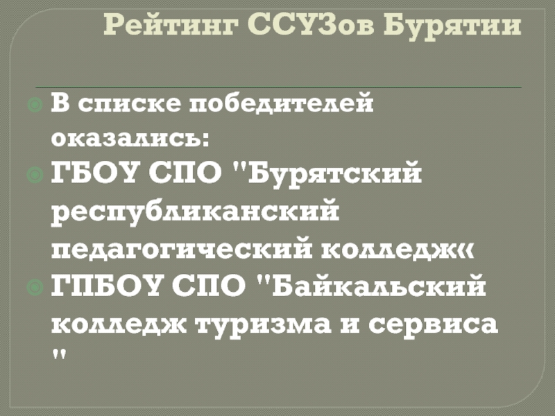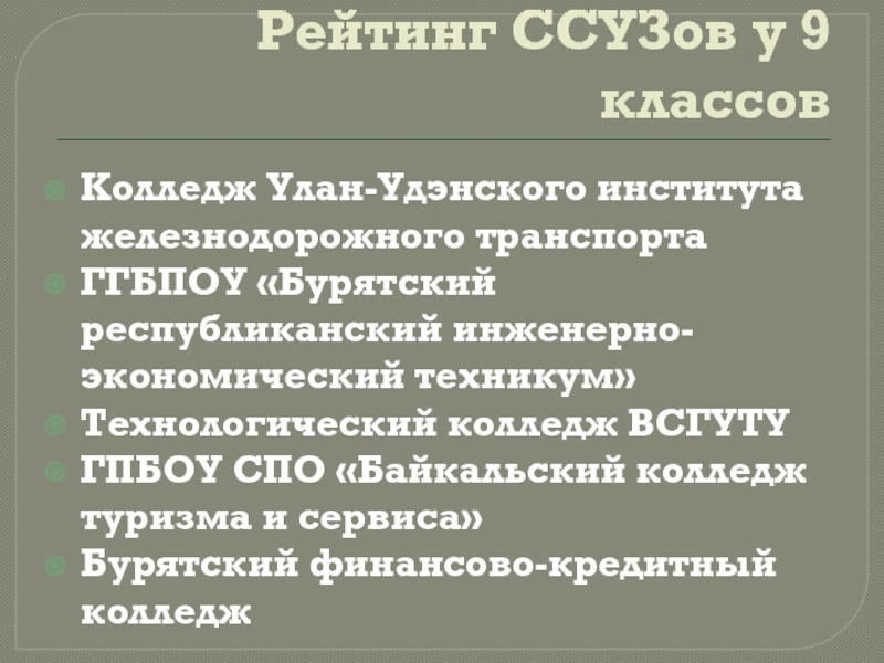 Слайд 12Рейтинг ССУЗов Бурятии