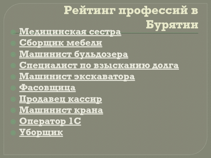 Слайд 5Рейтинг профессий в Бурятии