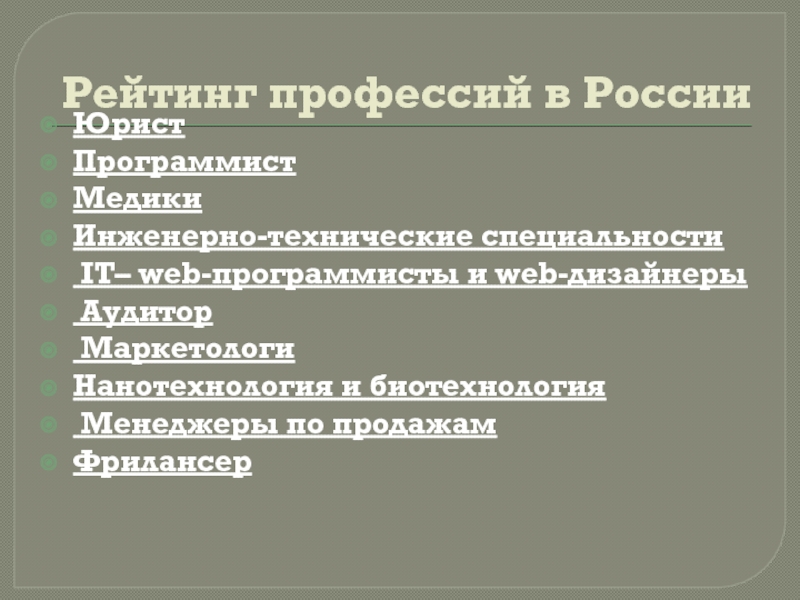 Слайд 4Рейтинг профессий в России