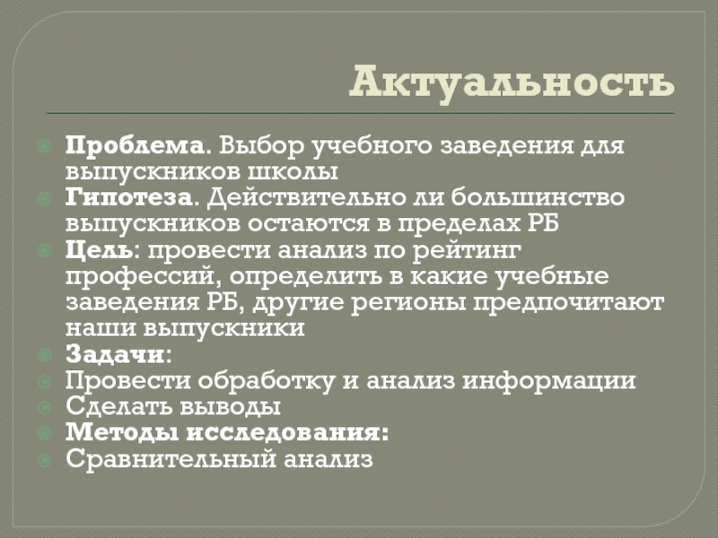 Проблема. Выбор учебного заведения для выпускников школы