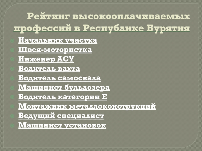 Слайд 6Рейтинг высокооплачиваемых профессий в Республике Бурятия