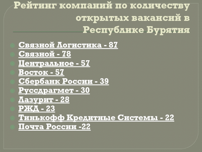 Слайд 8Рейтинг компаний по количеству открытых вакансий в Республике Бурятия