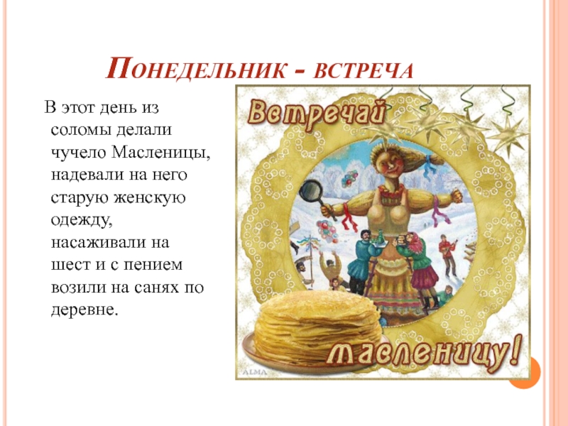 Слайд 4Вся неделя празднования масленицы по церковной терминологии именовалась "мясопуст", полное воздержание