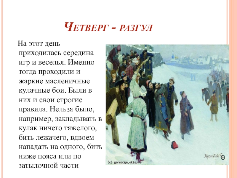 Четверг – разгул http://ekklezia.ru/blogi/1350-istoriya-prazdnika-maslenitsa.html