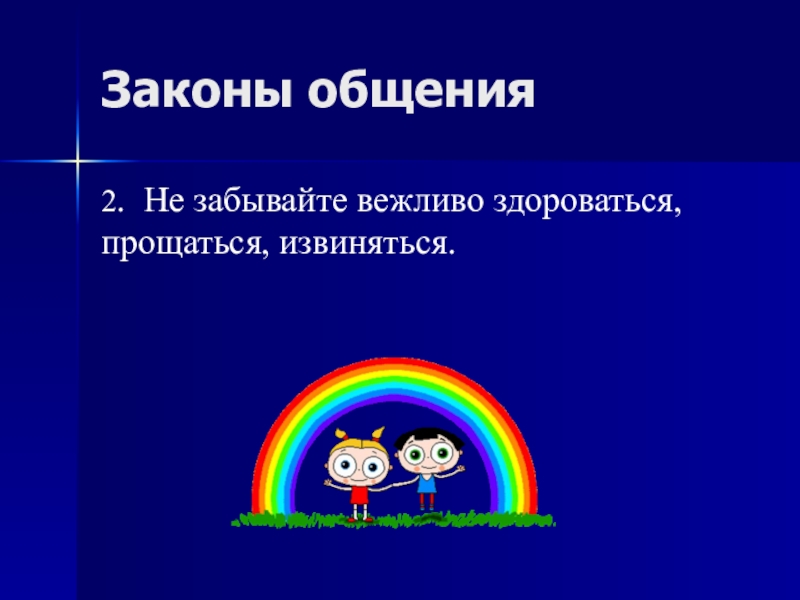 Законы общения2. Не забывайте вежливо здороваться, прощаться, извиняться.