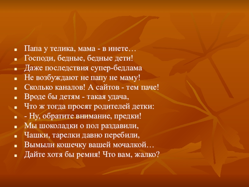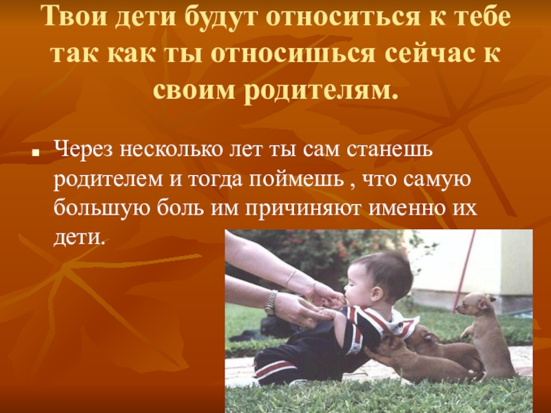 Через несколько лет ты сам станешь родителем и тогда поймешь , что самую большую боль им причиняют именно их дети.