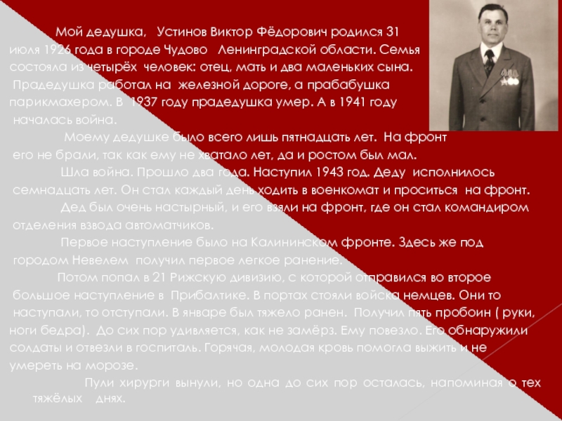 Я очень горжусь своим дедушкой и каждый год поздравляю его с праздником.