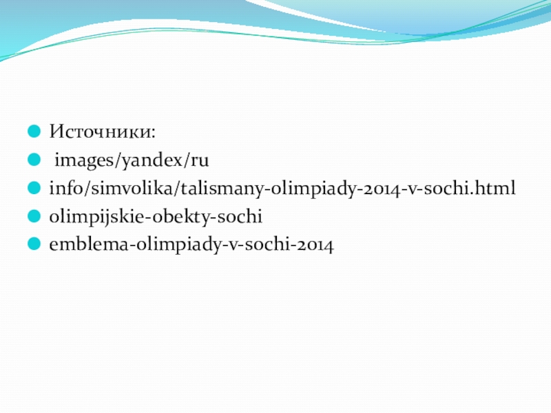 Источники: images/yandex/ruinfo/simvolika/talismany-olimpiady-2014-v-sochi.htmlolimpijskie-obekty-sochiemblema-olimpiady-v-sochi-2014