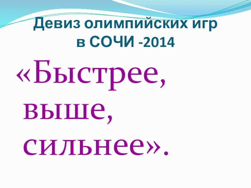 Девиз олимпийских игр  в СОЧИ -2014«Быстрее, выше, сильнее».