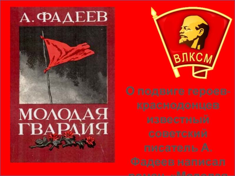 Слайд 15О подвиге героев-краснодонцев известный советский писатель А.Фадеев написал роман «Молодая гвардия»