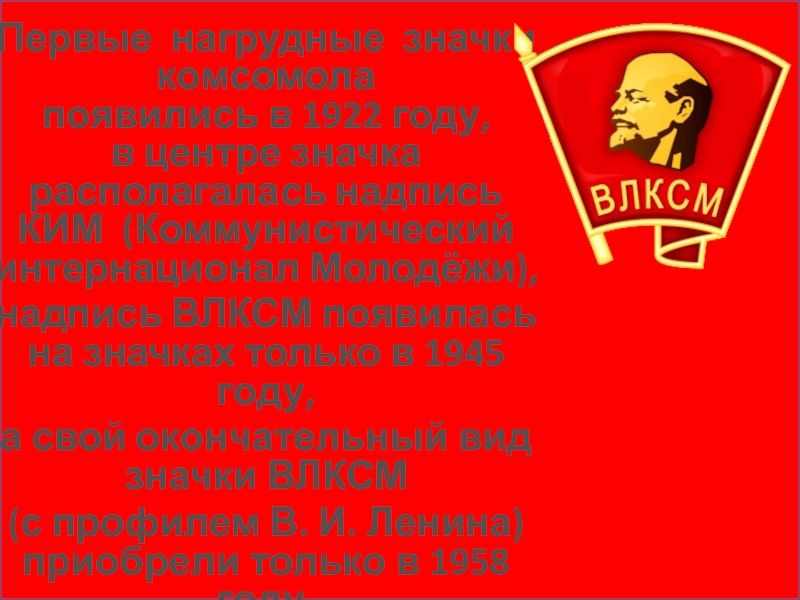 надпись ВЛКСМ появилась на значках только в 1945 году,
