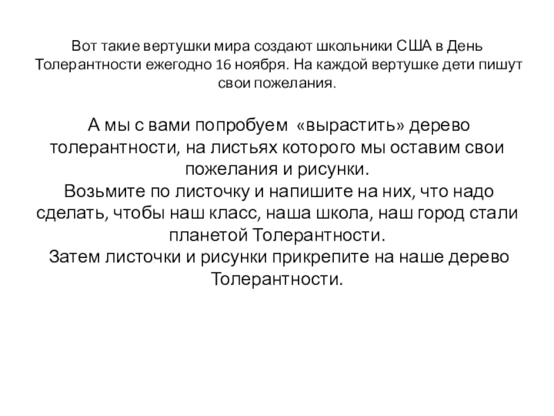 Слайд 17Вот такие вертушки мира создают школьники США в День Толерантности ежегодно
