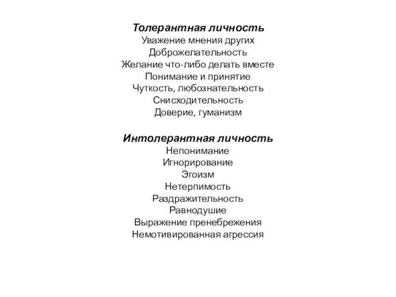 Описание черт, присущих толерантной и интолерантной личности.