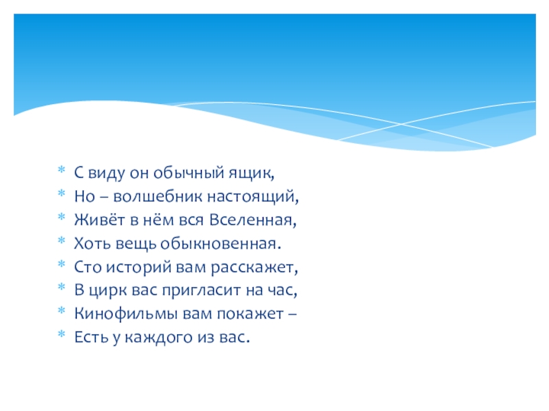 Это сайт презентаций, где можно хранить и обмениваться своими презентациями, докладами, проектами, шаблонами в формате PowerPoint с другими пользователями. Мы помогаем школьникам, студентам, учителям, преподавателям хранить и обмениваться учебными материалами.