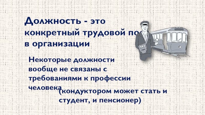 (кондуктором может стать и студент, и пенсионер)